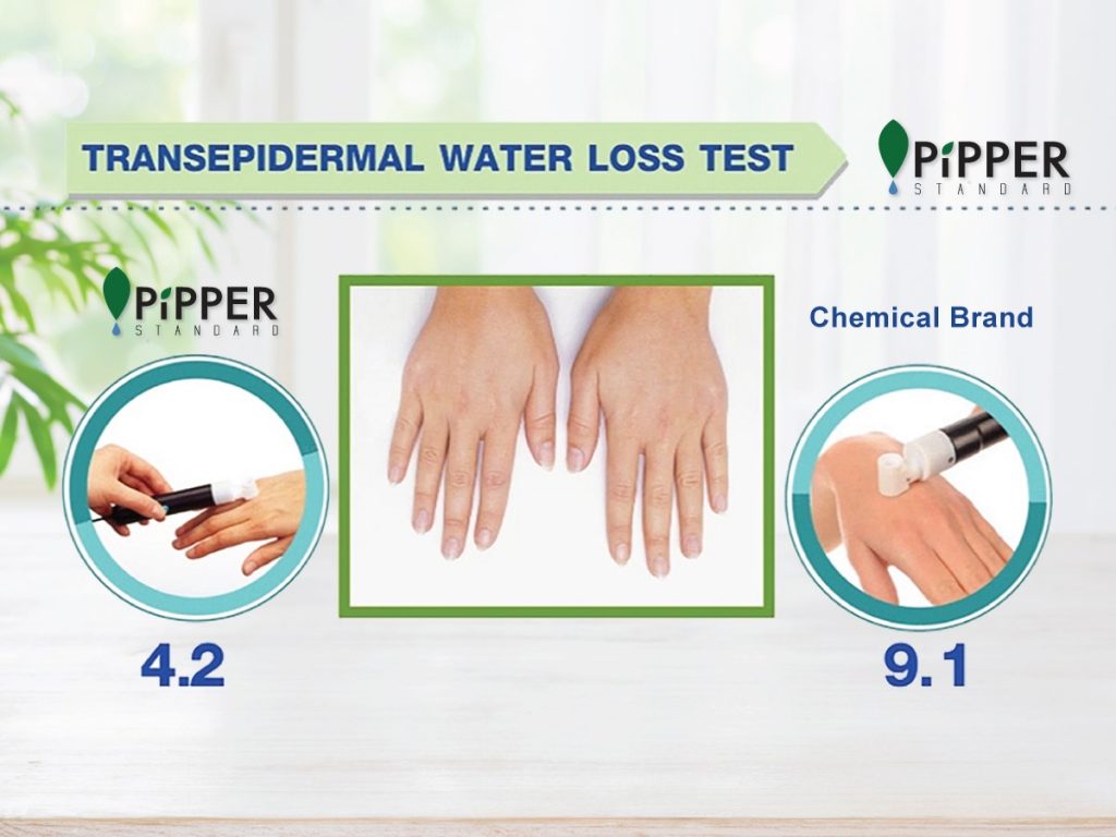 คุณเจง : น้ำยาล้างจานถือเป็นผลิตภัณฑ์ที่ค่อนข้างยากในการทำสูตร เพราะอาหารไทยนั้นขึ้นชื่อเรื่องกลิ่นและคราบมัน และต้องสามารถตอบโจทย์ไม่ระคายเคืองผิวของคนล้าง เราใช้เวลาอยู่เกือบ 2 ปีกว่าจะลงตัว หลังจากที่เราทดสอบแล้วว่า น้ำยาล้างจานสามารถขจัดคราบและกลิ่นไขมันอาหารได้ดีแล้ว เราติดต่อไปที่มหาวิทยาลัยหัวเฉียว เพื่อร่วมกับคณะอาจารย์ ในการใช้เครื่องมือในการวัดความชุ่มชื้นของผิวหนัง ทั้งก่อนและหลังล้างจาน โดยเทียบทั้งน้ำยาล้างจานเคมีทั่วไป และน้ำยาล้างจาน พิพเพอร์ สแตนดาร์ด ผลการทดสอบครั้งนั้น ทำให้เรามั่นใจในเรื่องการไม่ระคายเคืองผิว และเรายังส่งน้ำยาล้างจาน พิพเพอร์ สแตนดาร์ด ไปทดสอบการระคายเคืองผิวที่สถาบันเดิร์ม สแกนเอเชีย อีกด้วยค่ะ