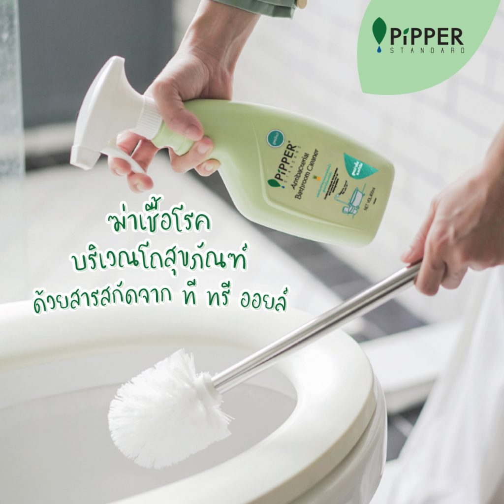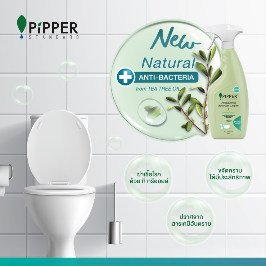 ให้คุณแม่บ้านทำความสะอาดห้องน้ำได้สะอาดหมดจดพร้อมๆ กับการฆ่าเชื้อแบคทีเรีย ด้วยสารสกัดธรรมชาติจากที ทรี ออยล์ ที่มีประสิทธิภาพในการกำจัดแบคทีเรียได้ดีเทียบเท่ากับสารเคมี นอกจากนี้ยังมีสารทำความสะอาดธรรมชาติจากสับปะรดที่มีคุณสมบัติในการขจัดคราบสกปรกและคราบสบู่ได้อย่างมีประสิทธิภาพ ที่สำคัญไม่มีส่วนผสมจากกรดไฮโดรคลอริก จึงไม่มีฤทธิ์กัดกร่อนทำลายพื้นผิวสุขภัณฑ์และยาแนว คุณแม่บ้านสามารถล้างห้องน้ำได้โดยไม่ต้องสวมถุงมือค่ะ จริงๆ แล้ว เวลาล้างห้องน้ำ คุณแม่บ้านจะพาคุณลูกมาช่วยกันล้างห้องน้ำด้วยก็ได้นะคะ เพราะน้ำยาล้างห้องน้ำพิพเพอร์ สแตนดาร์ด สูตรแอนตี้แบคทีเรียจากธรรมชาติ ผ่านการทดสอบการระคายเคืองโดยการควบคุมจากแพทย์ผิวหนัง จึงปลอดภัยสำหรับทุกคนในครอบครัว คราวนี้ เราก็จะได้ทั้งห้องน้ำที่สะอาดและฝึกความรับผิดชอบเรื่องงานบ้านให้กับเด็กๆ ไปพร้อมๆ กันค่ะ
