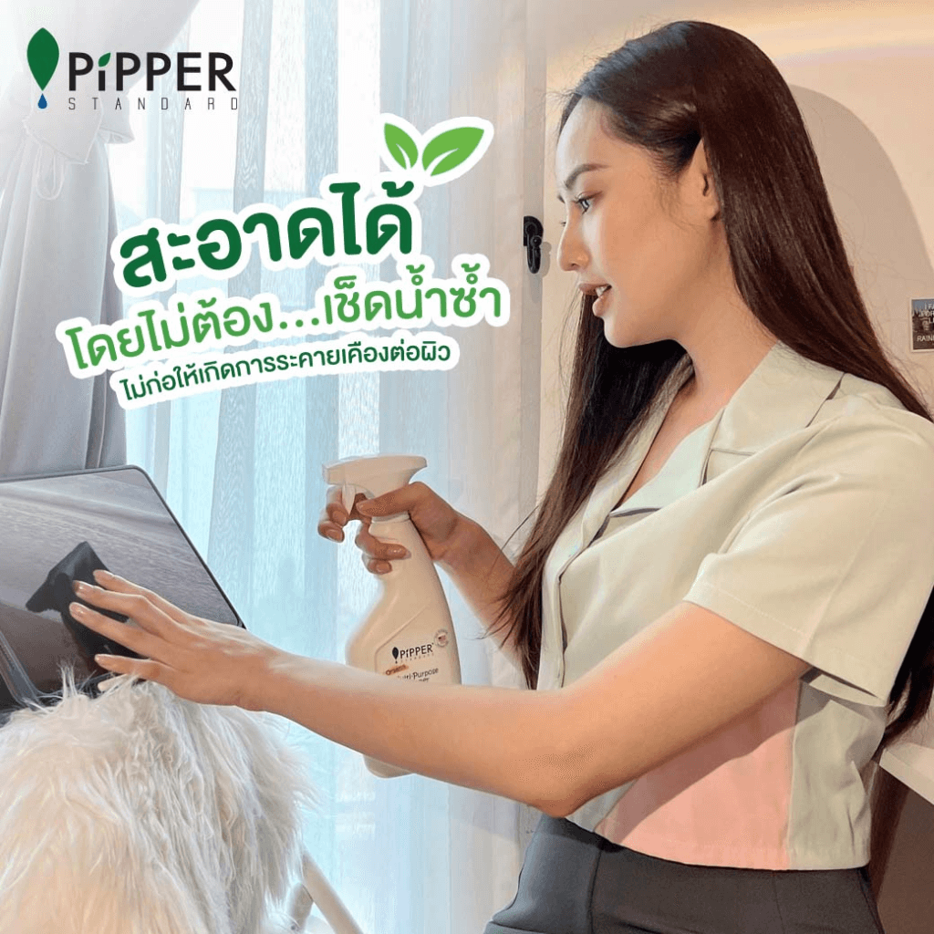 วันนี้พิพเพอร์ สแตนดาร์ด ขอแนะนำวิธีทำความสะอาดบ้าน แบบปราศจากสารเคมีอันตราย ง่าย ๆ เพียงฉีดแล้วเช็ดบริเวณที่ต้องการ โดยไม่ต้องเช็ดน้ำซ้ำ ทั้งสะอาด อ่อนโยน ปลอดภัย ด้วยพลังธรรมชาติจากสับปะรด ไม่ก่อให้เกิดการระคายเคืองต่อผิวเพราะผ่านการทดสอบการระคายเคืองจากแพทย์ผิวหนังชั้นนำ
