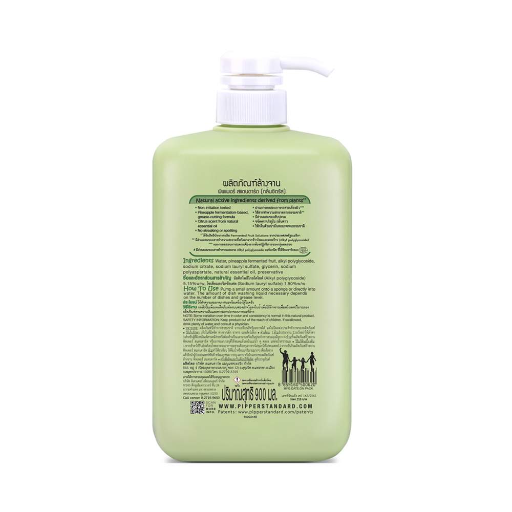 ผลิตภัณฑ์ล้างจานพิพเพอร์ สแตนดาร์ด ขจัดคราบอาหาร คราบมัน บนจาน ภาชนะ ได้อย่างหมดจด โดยไม่ทำลายความชุ่มชื้นของผิว ผลิตภัณฑ์ปราศจากสารก่อภูมิแพ้ตามมาตรฐานทรูเทสต์ ประเทศสหรัฐอเมริกาและผ่านการทดสอบการระคายเคือง จะมีกลิ่นอ่อนๆมาจากน้ำมันหอมระเหยจากธรรมชาติ