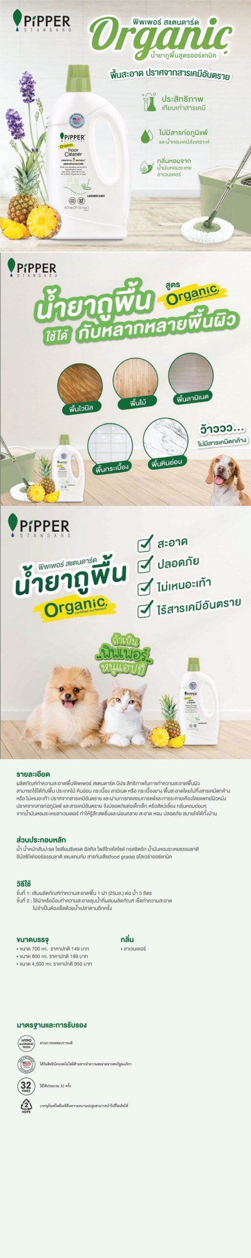 ผลิตภัณฑ์ทำความสะอาดพื้นพิพเพอร์ สแตนดาร์ด มีประสิทธิภาพในการทำความสะอาดพื้นผิว สามารถใช้ได้กับพื้น ประเภทไม้ หินอ่อน กระเบื้อง ลามิเนต หรือ กระเบื้องยาง พื้นสะอาดโดยไม่ทิ้งสารเคมีตกค้างหรือ คราบเหนียวบนพื้น ปราศจากสารเคมีอันตราย และผ่านการทดสอบการแพ้และการระคายเคืองโดยแพทย์ผิวหนัง จึงปลอดภัยต่อผิวเด็กเล็ก หรือสัตว์เลี้ยง กลิ่นหอมอ่อนๆ จากน้ำมันหอมระเหยลาเวนเดอร์ ทำให้รู้สึกสดชื่นและผ่อนคลายขณะทำความสะอาด