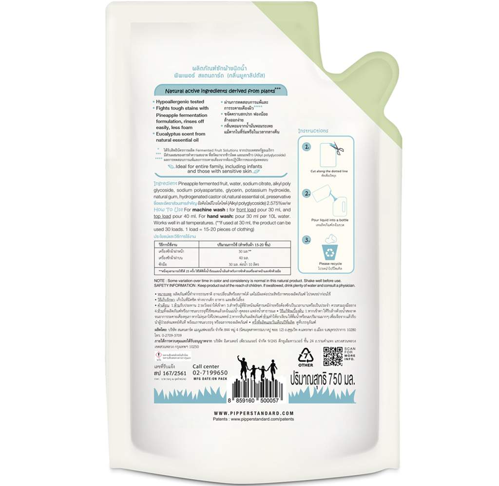ผลิตภัณฑ์น้ำยาซักผ้าจากธรรมชาติ กลิ่นยูคาลิปตัส 750 มล. x 6 ถุง
