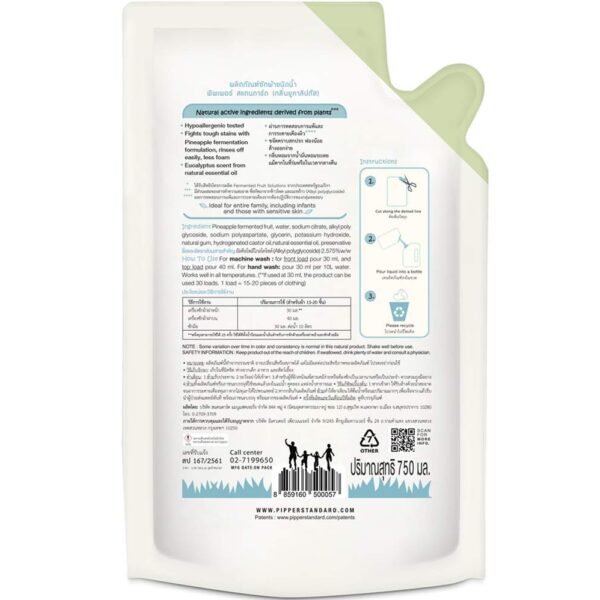 ผลิตภัณฑ์น้ำยาซักผ้าจากธรรมชาติ กลิ่นยูคาลิปตัส 750 มล. x 6 ถุง